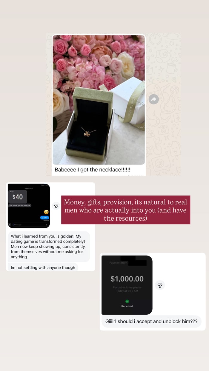 Her brand centers on teaching women how to position themselves to attract investment, commitment, and provision from high-caliber men by enforcing clear standards and controlled access.